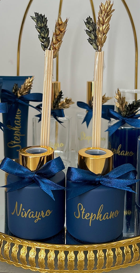 Marineblauw geurstokjeshouder met dop naar keuze (incl. 4 geurstokjes)