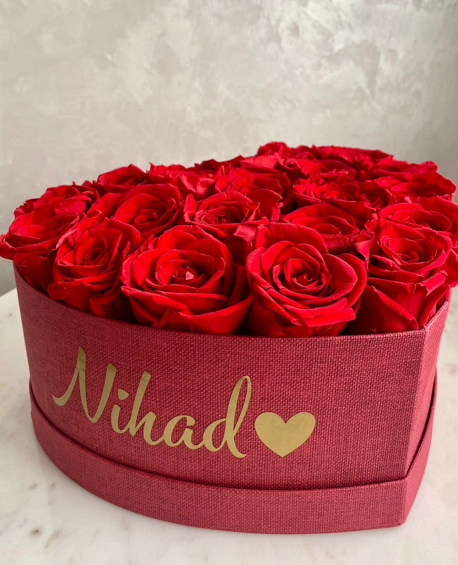 Flowerbox hart met verse rozen