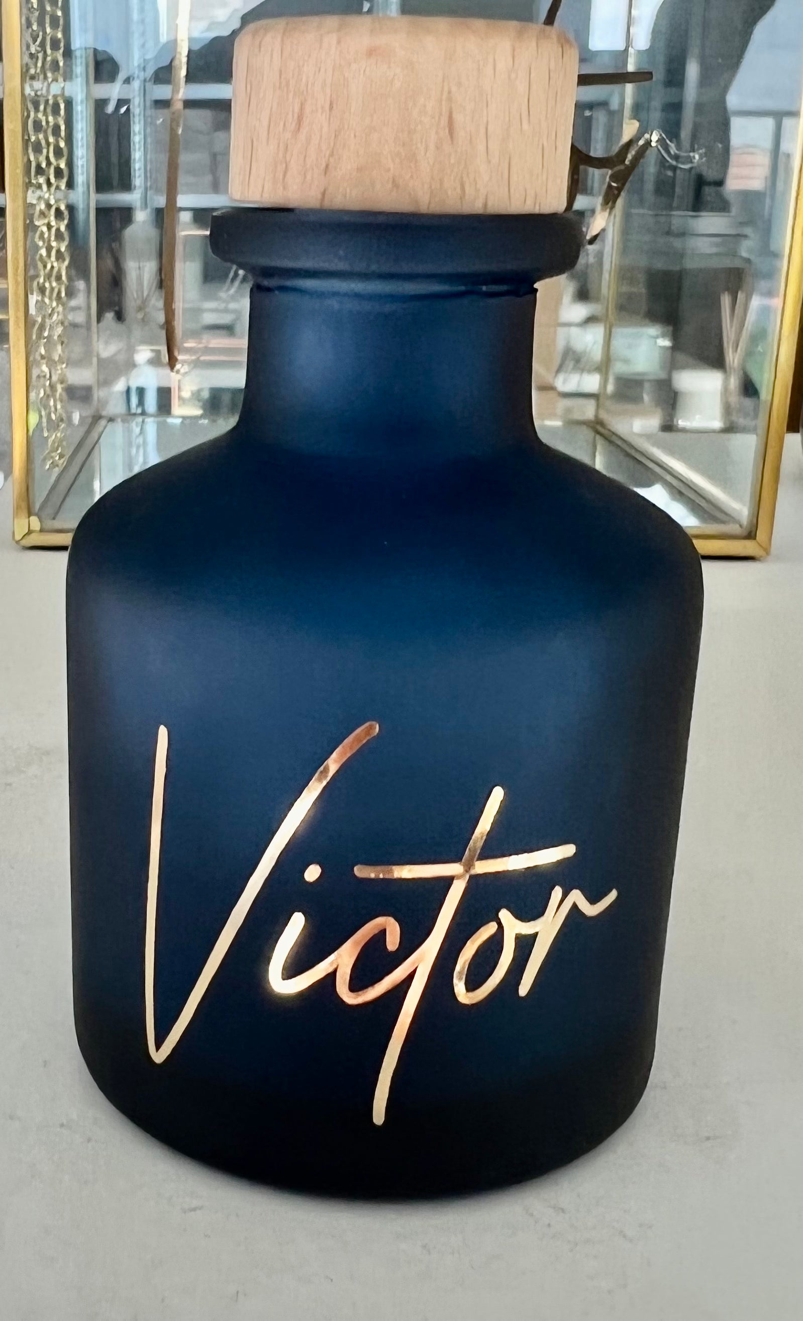 Marineblauw parfumflesje met dop naar keuze (incl. 4 geurstokjes)